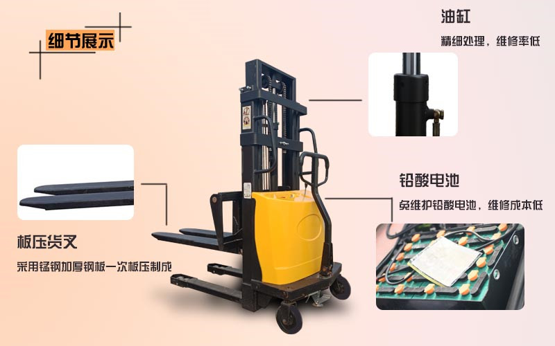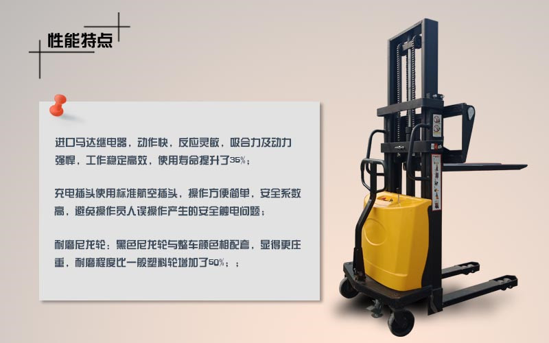 半電動堆高車電動起升,可減少使用者的疲勞感,車身小,適用于狹窄空間。電動堆高車生產(chǎn)廠家定義半電動堆高車為經(jīng)濟實惠型堆高車,半電動堆高車廠家報價也相較于全電動堆高車而言更適合大眾。