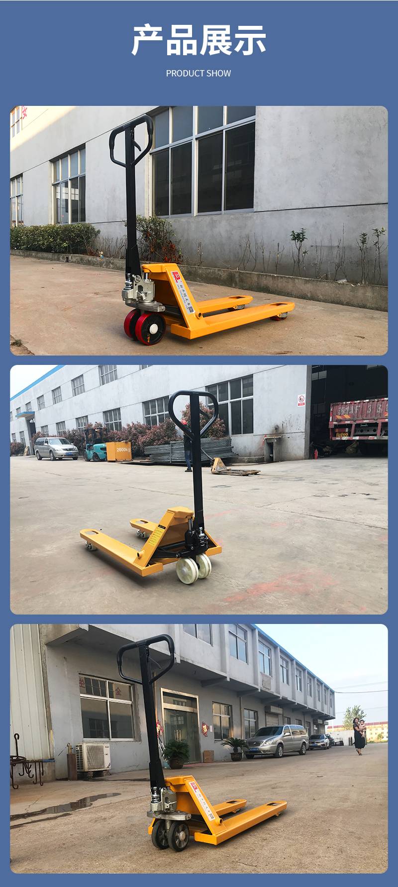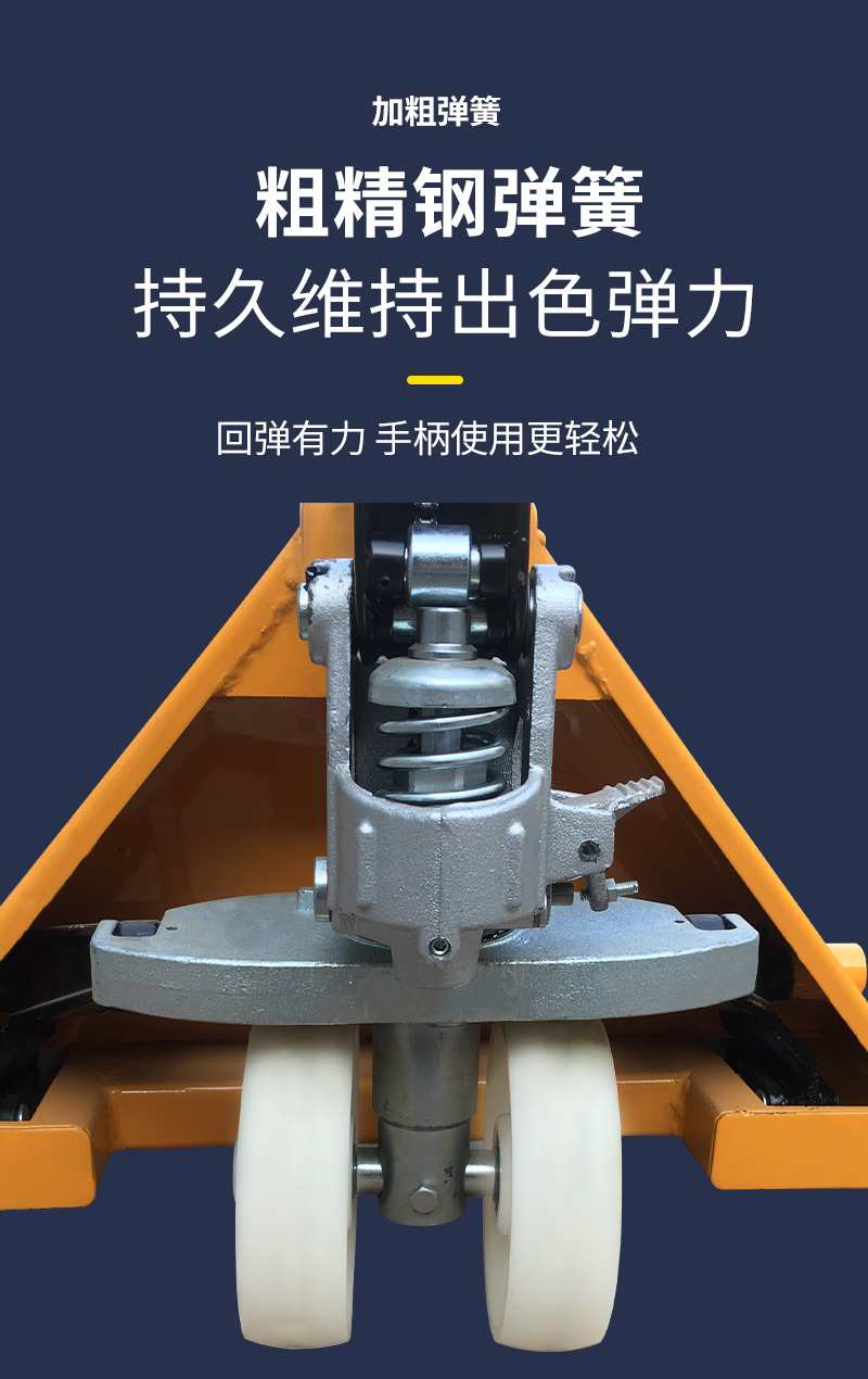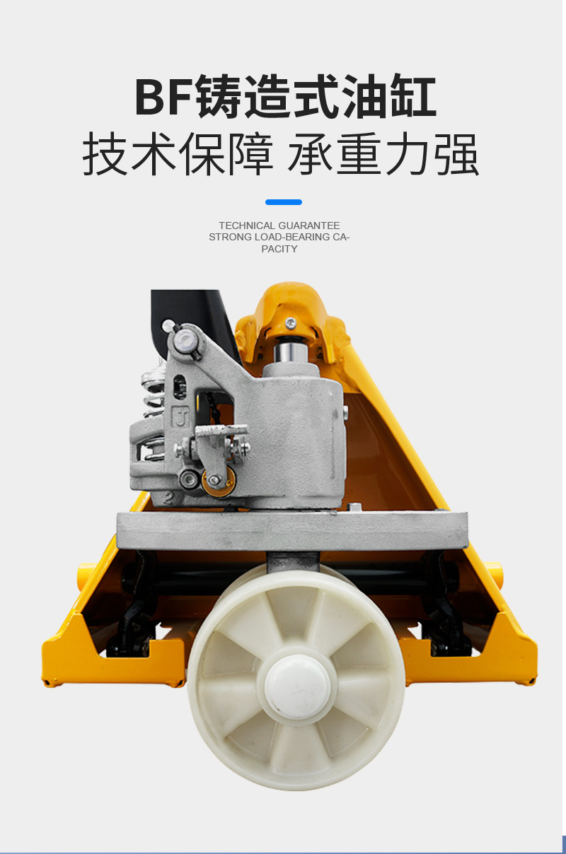 手動托盤搬運車主要包括:2噸2.5噸3噸手動托盤搬運車?手動叉車用什么托盤:川字或九腿的單面托盤,不可以用雙面托盤。手動托盤叉車噴塑表面,油漆更光亮更耐用美觀;手動托盤叉車輪子可定制為尼龍和鐵心聚氨酯輪胎;手動托盤叉車機械手臂焊接的接縫更牢固,使用壽命長;手動托盤叉車小幅度內傾角設計,防止貨物傾斜,提高工作效率。